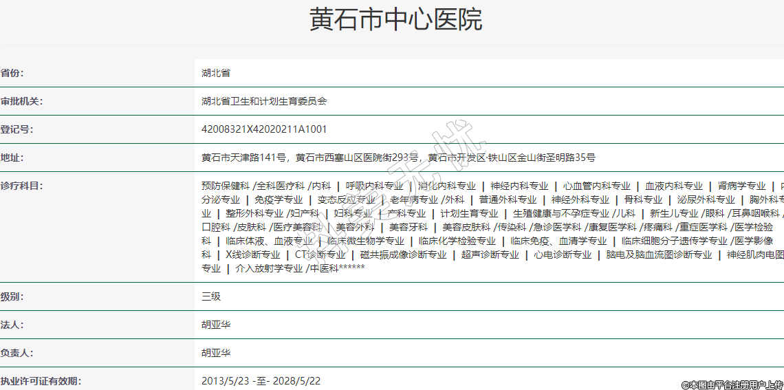 地址:黃石市天津路141號,黃石市西塞山區(qū)醫(yī)院街293號,黃石市開發(fā)區(qū)·鐵山區(qū)金山街圣明路35號