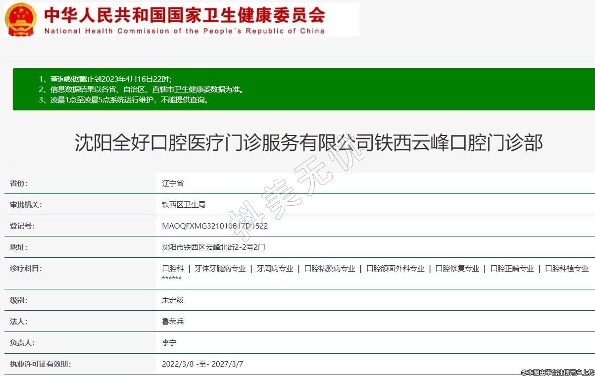 沈陽全好口腔醫(yī)療門診服務有限公司鐵西云峰口腔門診部