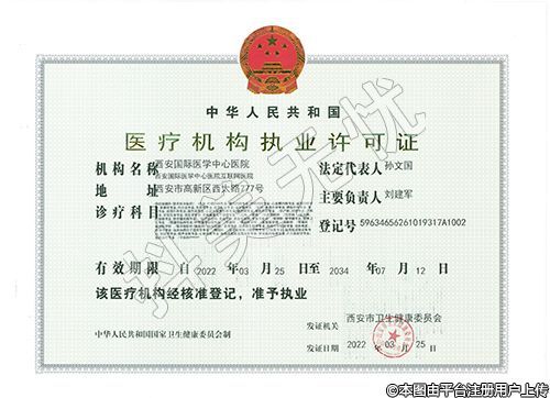 有效期限:自2022年03月25日至2034年07月12日發(fā)證機關(guān):西安市衛(wèi)生健康委員會
