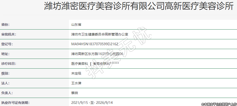濰坊濰密醫(yī)療美容診所有限公司高新醫(yī)療美容診所