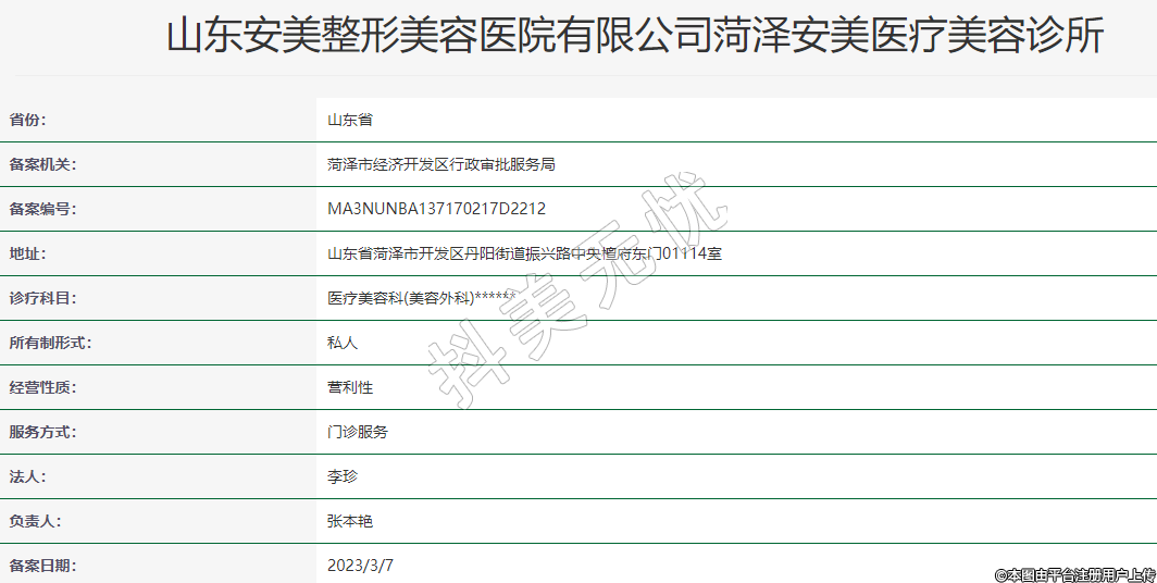 山東安美整形美容醫(yī)院有限公司菏澤安美醫(yī)療美容診所