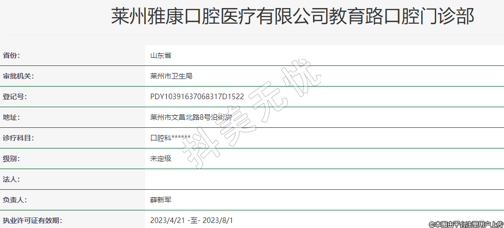 萊州雅康口腔醫(yī)療有限公司教育路口腔門(mén)診部