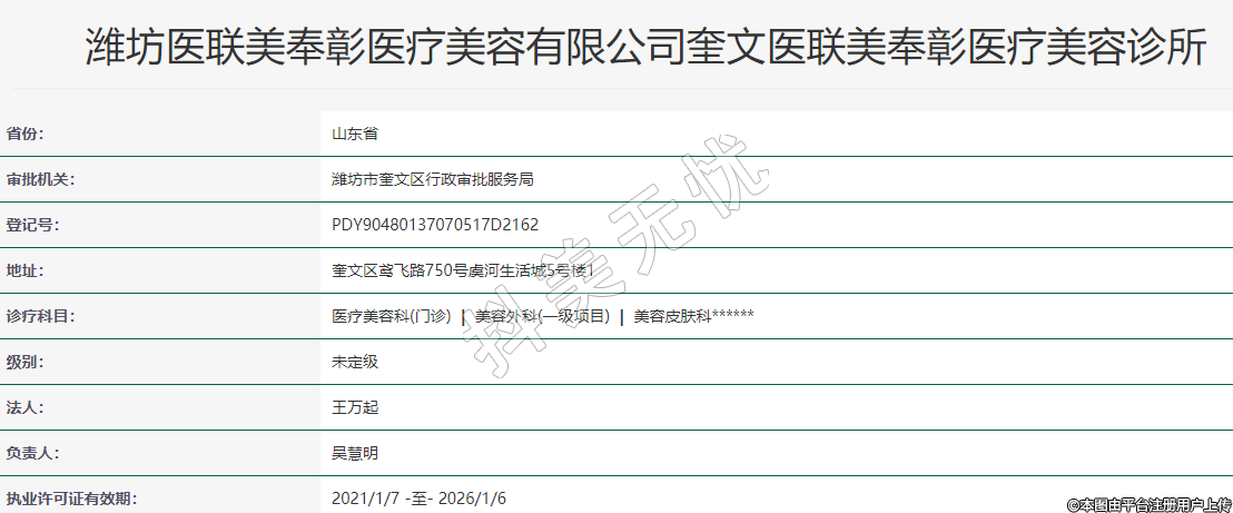 濰坊醫(yī)聯(lián)美奉彰醫(yī)療美容有限公司奎文醫(yī)聯(lián)美奉彰醫(yī)療美容診所