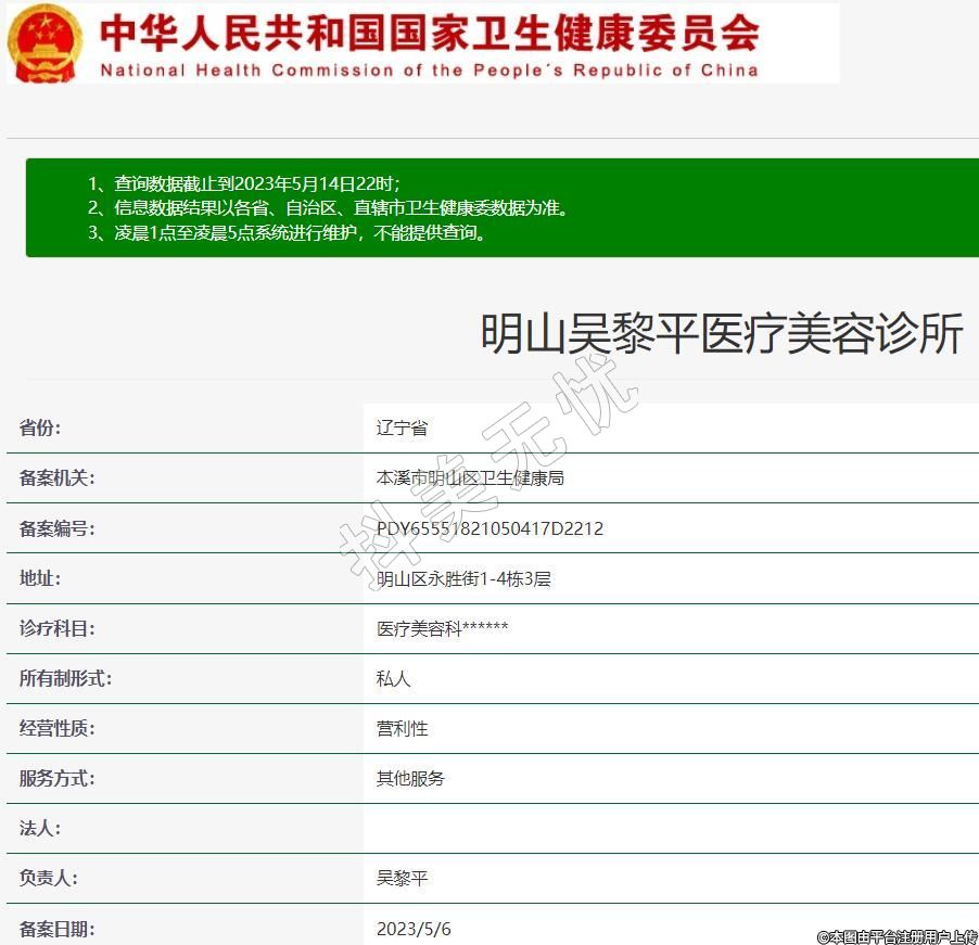明山吳黎平醫(yī)療美容診所,診療科目:醫(yī)療美容科******