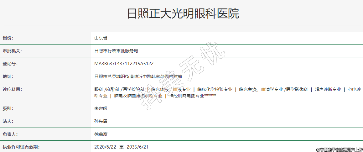 執(zhí)業(yè)許可證有效期:2020/6/22 -至- 2035/6/21