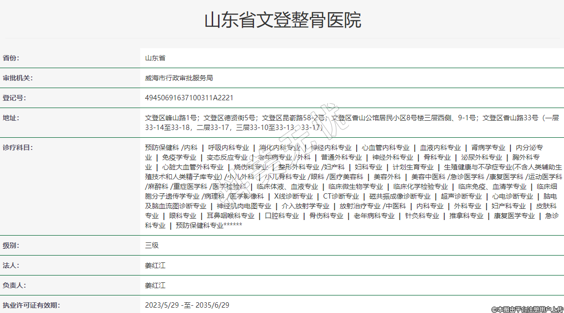 山東省文登整骨醫(yī)院