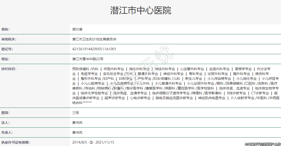 審批機關(guān):潛江市衛(wèi)生和計劃生育委員會
