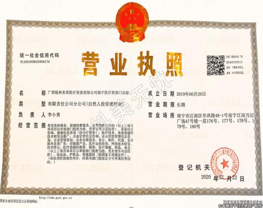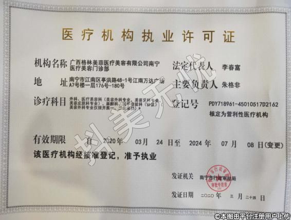機構(gòu)名稱:廣西格林美菲醫(yī)療美容有限公司南寧醫(yī)療美容門診部