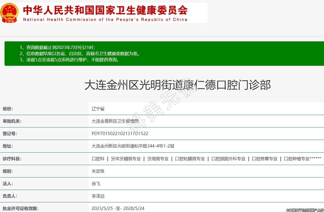 大連金州區(qū)光明街道康仁德口腔門(mén)診部