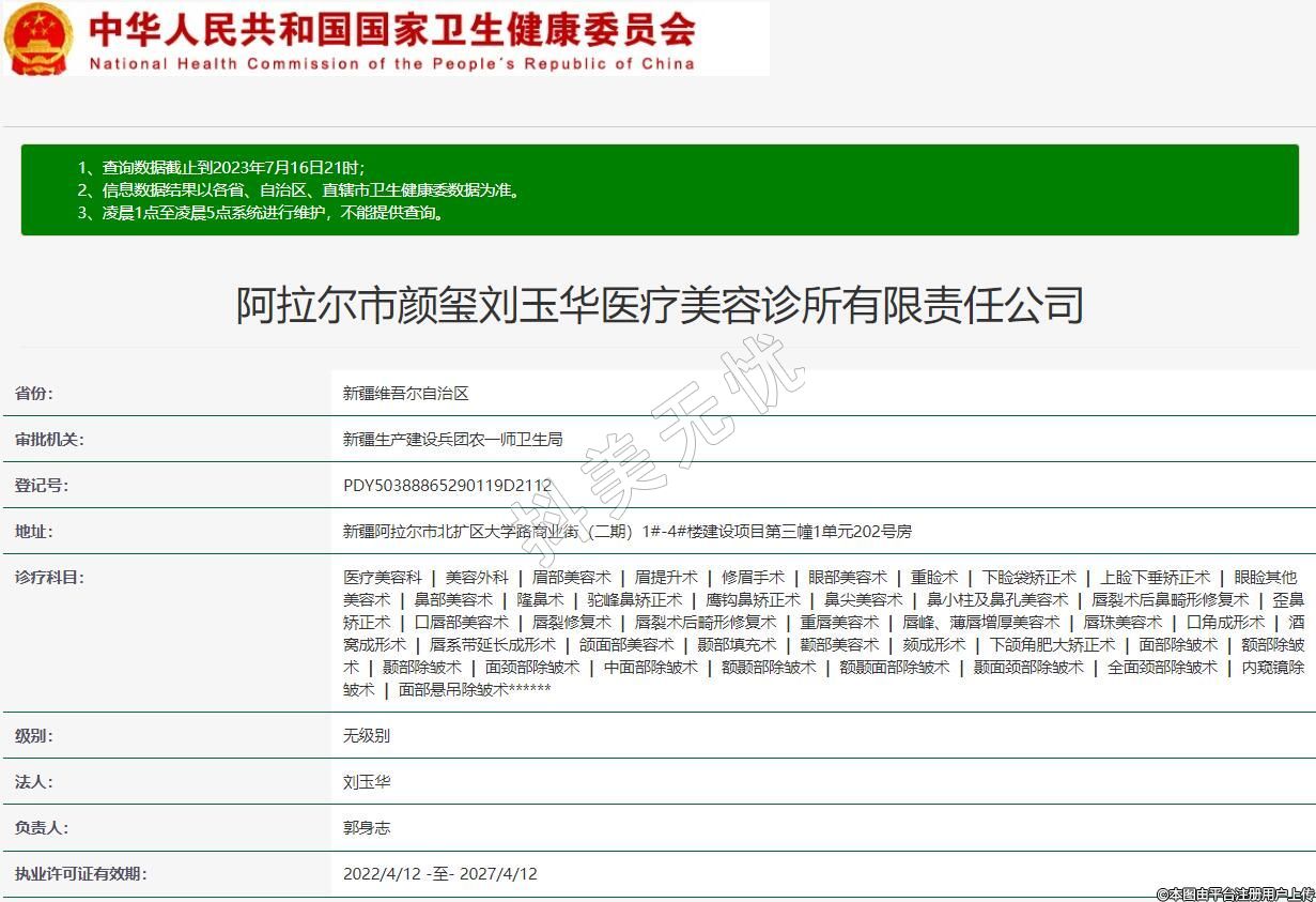 阿拉爾市顏璽劉玉華醫(yī)療美容診所有限責(zé)任公司
