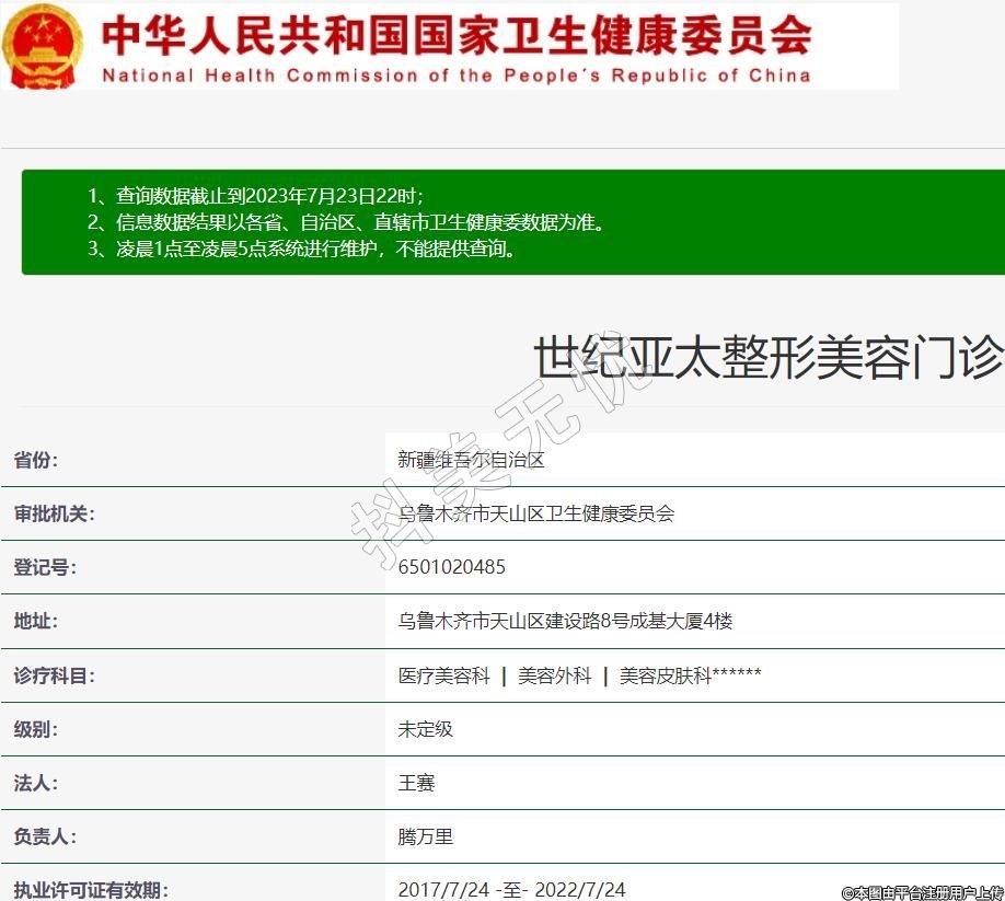 審批機關(guān):烏魯木齊市天山區(qū)衛(wèi)生健康委員會