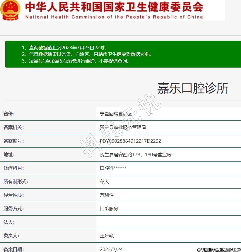賀蘭嘉樂口腔診所于2011年創(chuàng)建,坐落于銀川市賀蘭縣居安西路(長城惠蘭園F3-3號房)。診所經(jīng)營近十年,口碑好,病源逐年遞增,現(xiàn)有牙椅4臺,主治醫(yī)師1人,執(zhí)業(yè)醫(yī)師1人,助理醫(yī)師2人,護(hù)士2人,勵(lì)志為賀蘭縣口腔患者帶來先進(jìn)的口腔美容技術(shù)和服務(wù)。