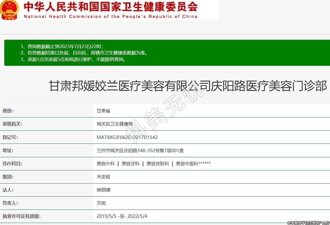 甘肅邦媛姣蘭醫(yī)療美容有限公司慶陽(yáng)路醫(yī)療美容門診部