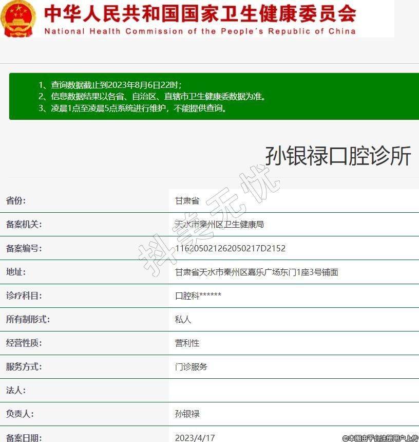 備案機(jī)關(guān):天水市秦州區(qū)衛(wèi)生健康局