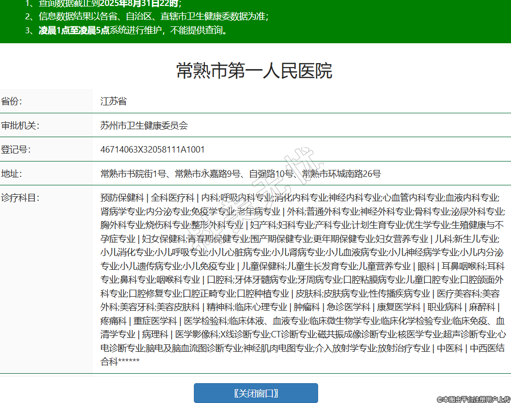 省份:江蘇省審批機(jī)關(guān):蘇州市衛(wèi)生健康委員會(huì)登記號(hào):46714063X32058111A1001地址:常熟市書院街1號(hào)、常熟市永嘉路9號(hào)、自強(qiáng)路10號(hào)、常熟市環(huán)城南路26號(hào)診療科目:預(yù)防保健科 | 全科醫(yī)療科 | 內(nèi)科;呼吸內(nèi)科專業(yè);消化內(nèi)科專業(yè);神經(jīng)內(nèi)科專業(yè);心血管內(nèi)科專業(yè);血液內(nèi)科專業(yè);腎病學(xué)專業(yè);內(nèi)分泌專業(yè);免疫學(xué)專業(yè);老年病專業(yè) | 外科;普通外科專業(yè);神經(jīng)外科專業(yè);骨科專業(yè);泌尿外科專業(yè);胸外科專業(yè);燒傷科專業(yè);整形外科專業(yè) | 婦產(chǎn)科;婦科專業(yè);產(chǎn)科專業(yè);計(jì)劃生育專業(yè);優(yōu)生學(xué)專業(yè);生殖健康與不孕癥專業(yè) | 婦女保健科;青春期保健專業(yè);圍產(chǎn)期保健專業(yè);更年期保健專業(yè);婦女營養(yǎng)專業(yè) | 兒科;新生兒專業(yè);小兒消化專業(yè);小兒呼吸專業(yè);小兒心臟病專業(yè);小兒腎病專業(yè);小兒血液病專業(yè);小兒神經(jīng)病學(xué)專業(yè);小兒內(nèi)分泌專業(yè);小兒遺傳病專業(yè);小兒免疫專業(yè) | 兒童保健科;兒童生長發(fā)育專業(yè);兒童營養(yǎng)專業(yè) | 眼科 | 耳鼻咽喉科;耳科專業(yè);鼻科專業(yè);咽喉科專業(yè) | 口腔科;牙體牙髓病專業(yè);牙周病專業(yè);口腔粘膜病專業(yè);兒童口腔專業(yè);口腔頜面外科專業(yè);口腔修復(fù)專業(yè);口腔正畸專業(yè);口腔種植專業(yè) | 皮膚科;皮膚病專業(yè);性傳播疾病專業(yè) | 醫(yī)療美容科;美容外科;美容牙科;美容皮膚科 | 精神科;臨床心理專業(yè) | 腫瘤科 | 急診醫(yī)學(xué)科 | 康復(fù)醫(yī)學(xué)科 | 職業(yè)病科 | 麻醉科 | 疼痛科 | 重癥醫(yī)學(xué)科 | 醫(yī)學(xué)檢驗(yàn)科;臨床體液、血液專業(yè);臨床微生物學(xué)專業(yè);臨床化學(xué)檢驗(yàn)專業(yè);臨床免疫、血清學(xué)專業(yè) | 病理科 | 醫(yī)學(xué)影像科;X線診斷專業(yè);CT診斷專業(yè);磁共振成像診斷專業(yè);核醫(yī)學(xué)專業(yè);超聲診斷專業(yè);心電診斷專業(yè);腦電及腦血流圖診斷專業(yè);神經(jīng)肌肉電圖專業(yè);介入放射學(xué)專業(yè);放射治療專業(yè) | 中醫(yī)科 | 中西醫(yī)結(jié)合科******級(jí)別:三級(jí)法定代表人:葉宏偉主要負(fù)責(zé)人:葉宏偉執(zhí)業(yè)許可證有效期:2023/11/28 -至- 2036/10/14 -