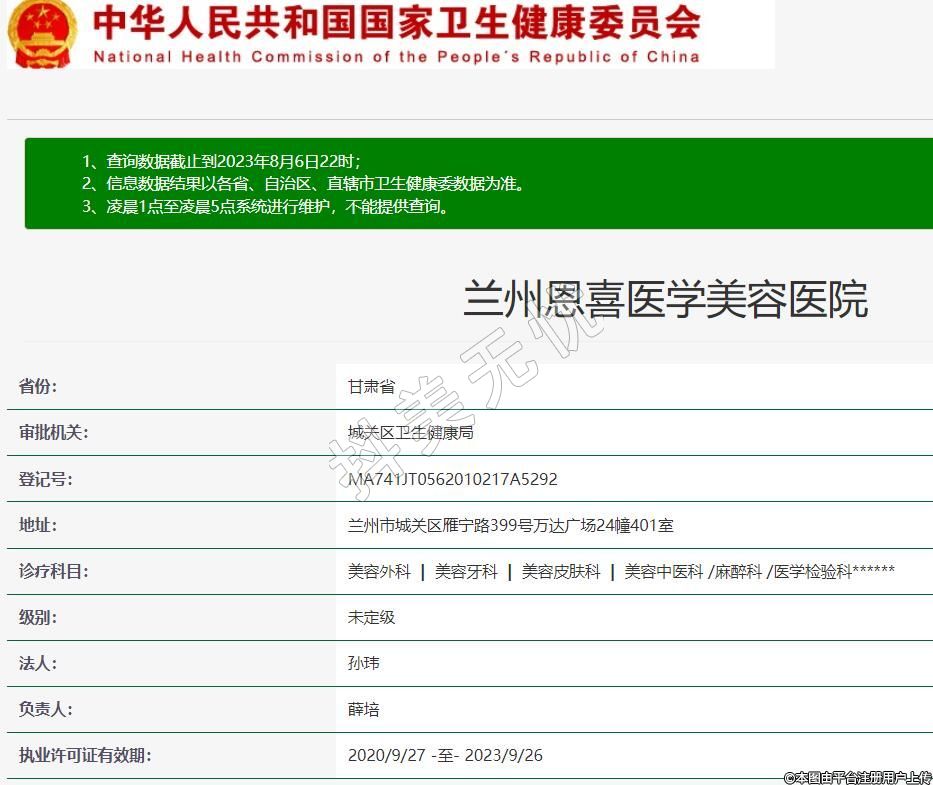 執(zhí)業(yè)許可證有效期:2020/9/27 -至- 2023/9/26