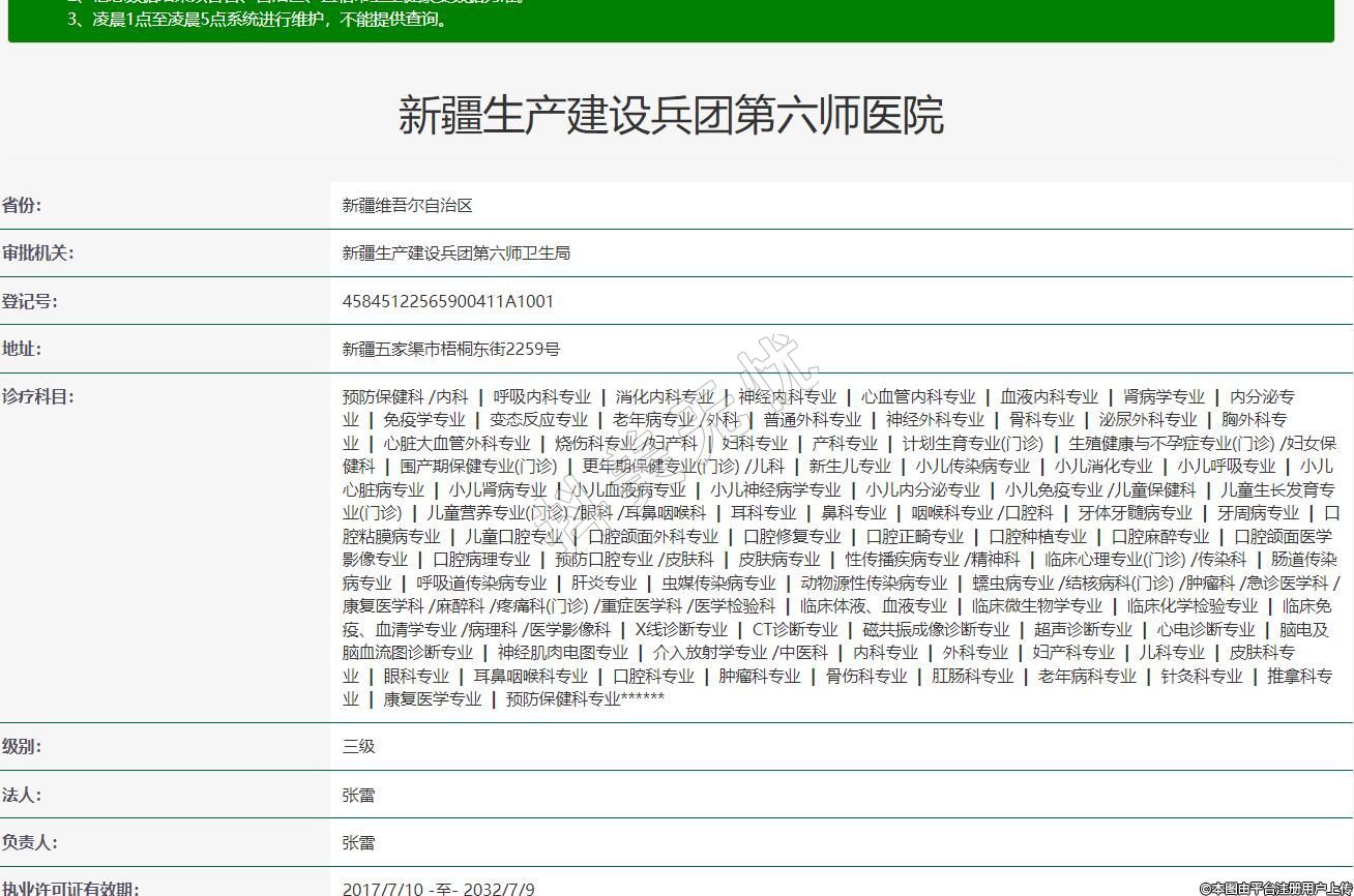 審批機關:新疆生產(chǎn)建設兵團第六師衛(wèi)生局