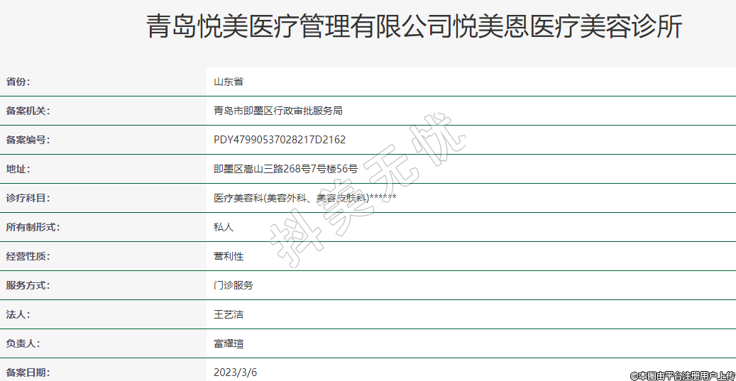 青島悅美醫(yī)療管理有限公司悅美恩醫(yī)療美容診所