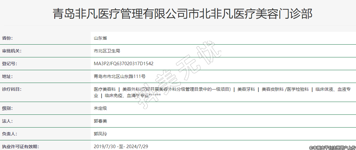 青島非凡醫(yī)療管理有限公司市北非凡醫(yī)療美容門診部