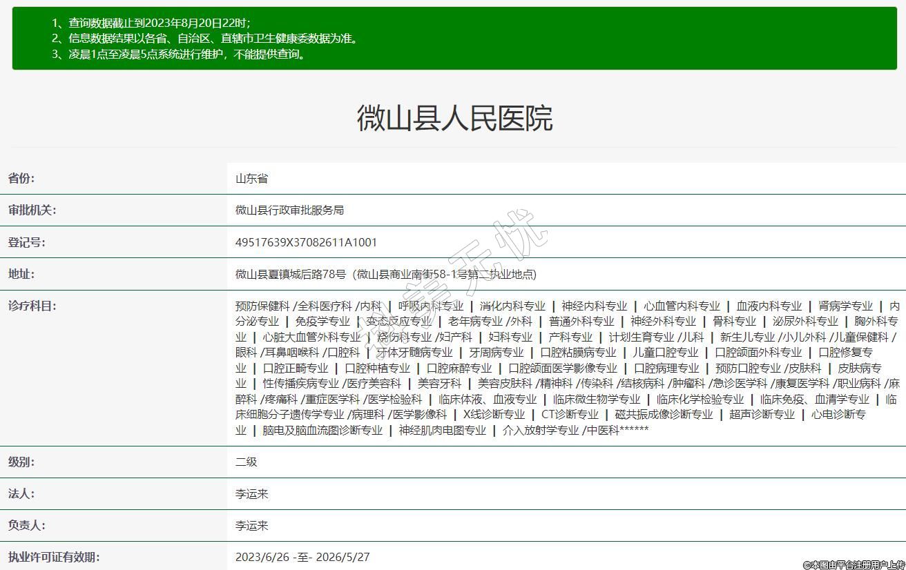 執(zhí)業(yè)許可證有效期:2023/6/26 -至- 2026/5/27
