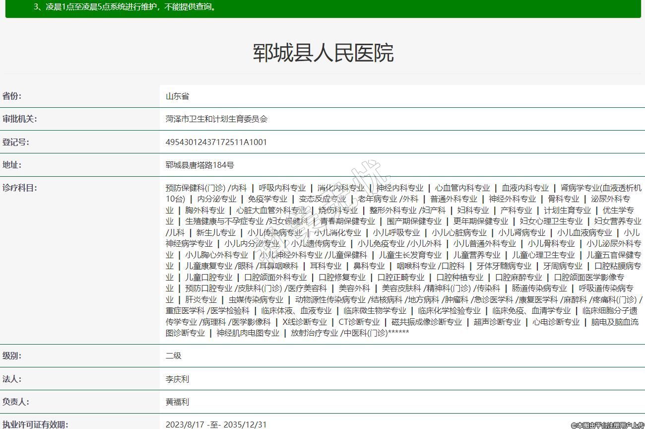 執(zhí)業(yè)許可證有效期:2023/8/17 -至- 2035/12/31