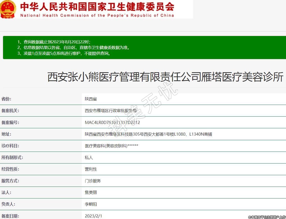 西安張小熊醫(yī)療管理有限責(zé)任公司雁塔醫(yī)療美容診所