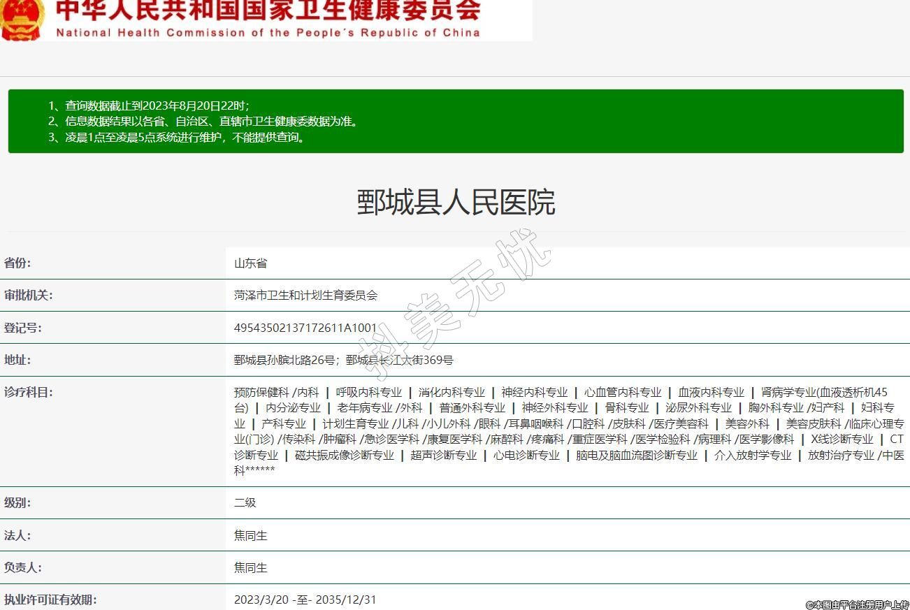 執(zhí)業(yè)許可證有效期:2023/3/20 -至- 2035/12/31