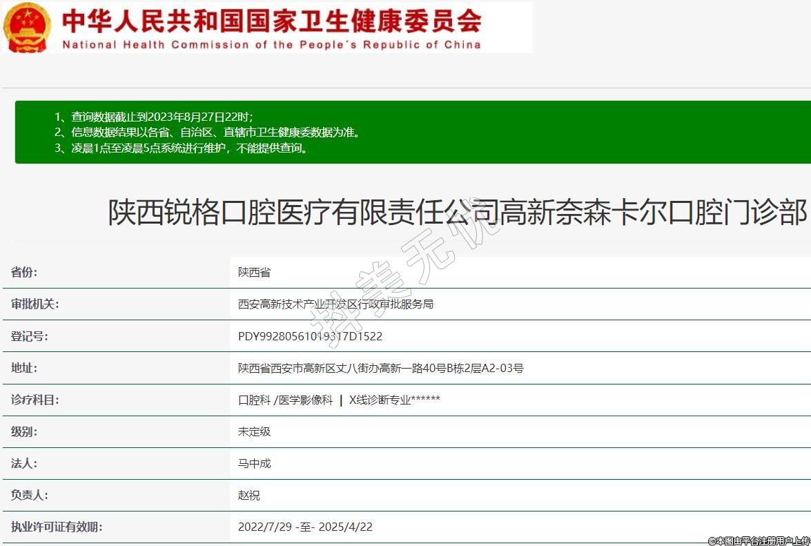 陜西銳格口腔醫(yī)療有限責(zé)任公司高新奈森卡爾口腔門診部