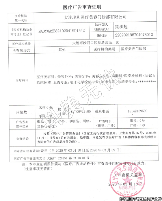 機(jī)構(gòu)名稱:大連瑞和醫(yī)療美容門(mén)診部有限公司