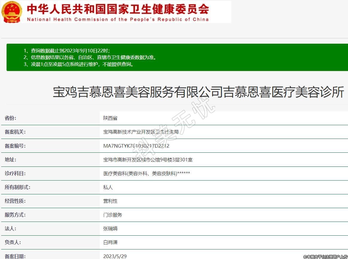 寶雞吉慕恩喜美容服務(wù)有限公司吉慕恩喜醫(yī)療美容診所,診療科目:醫(yī)療美容科(美容外科、美容皮膚科)******