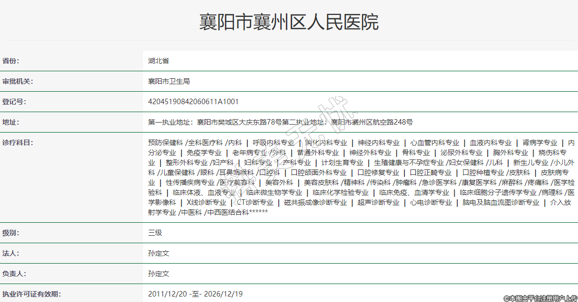 地址:第一執(zhí)業(yè)地址:襄陽市樊城區(qū)大慶東路78號第二執(zhí)業(yè)地址:襄陽市襄州區(qū)航空路248號