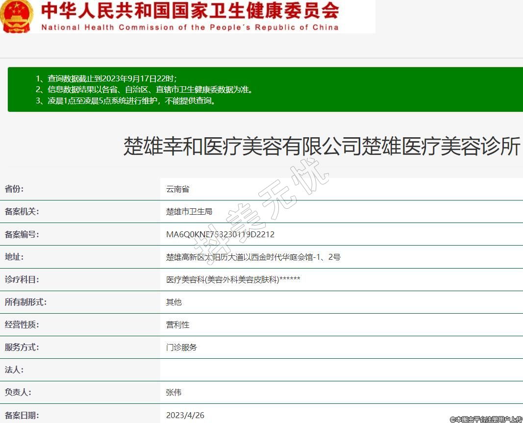 備案機(jī)關(guān):楚雄市衛(wèi)生局