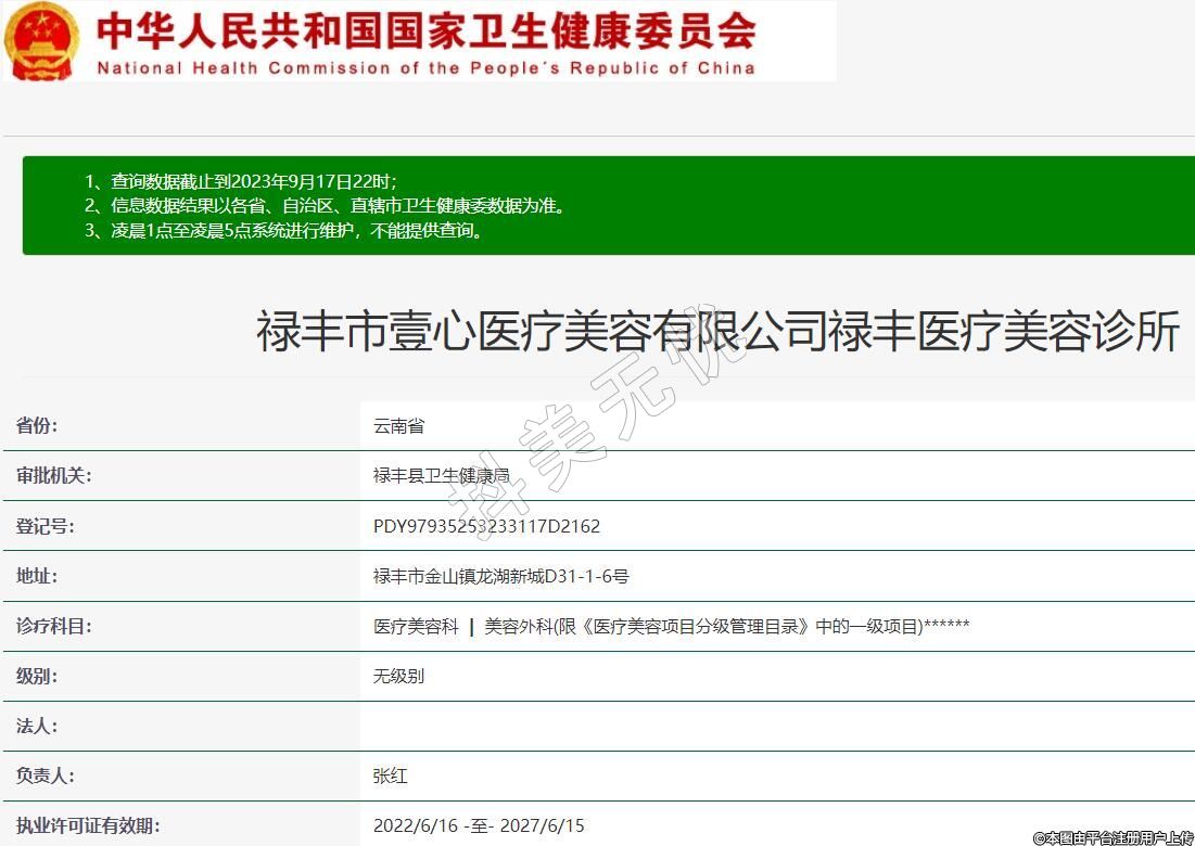 祿豐市壹心醫(yī)療美容有限公司祿豐醫(yī)療美容診所,診療科目:醫(yī)療美容科 | 美容外科(限《醫(yī)療美容項目分級管理目錄》中的一級項目)******