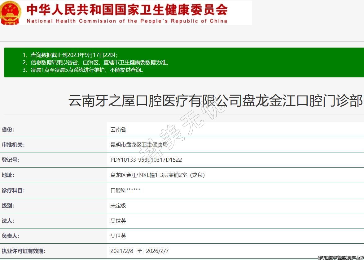 云南牙之屋口腔醫(yī)療有限公司盤龍金江口腔門診部