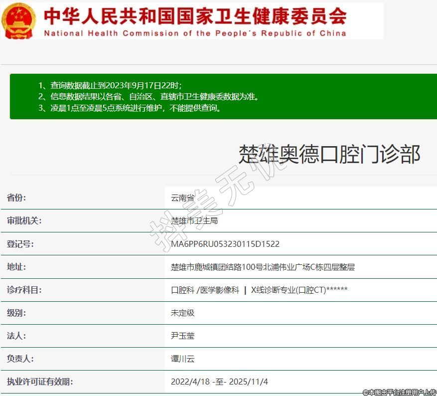 審批機(jī)關(guān):楚雄市衛(wèi)生局