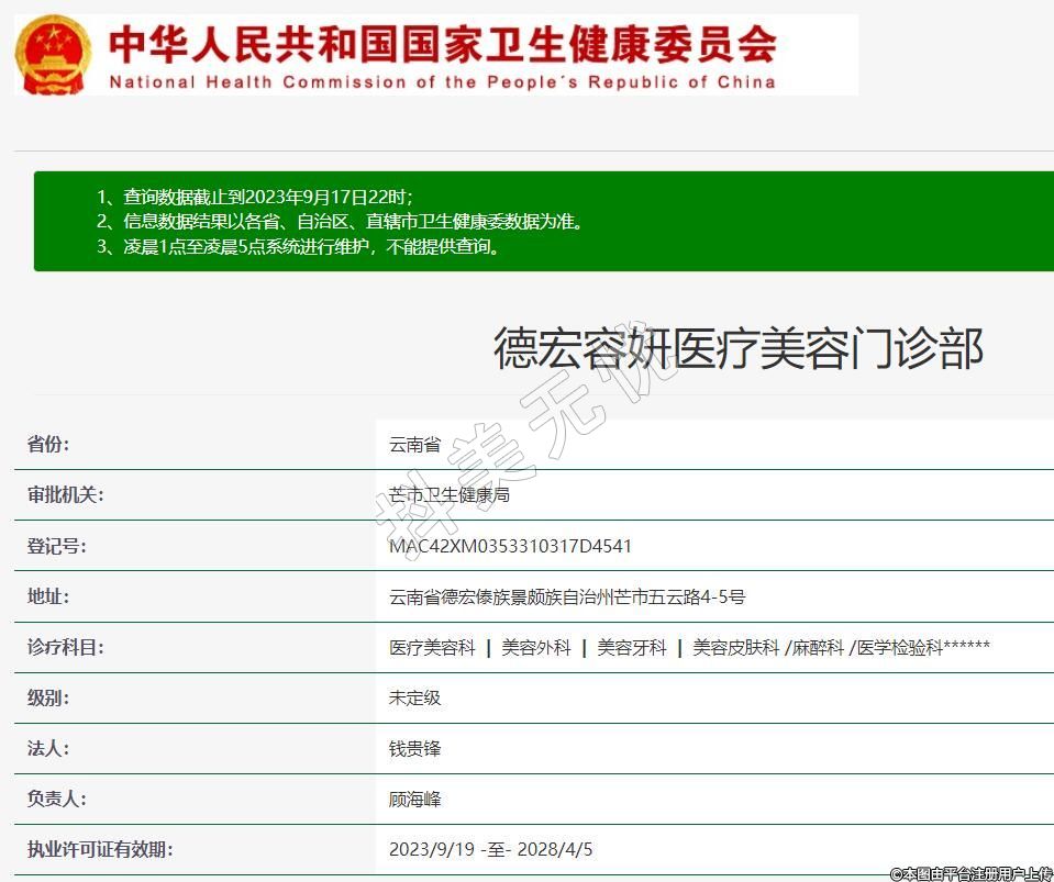 德宏容妍醫(yī)療美容門診部,診療科目:醫(yī)療美容科 | 美容外科 | 美容牙科 | 美容皮膚科 /麻醉科 /醫(yī)學檢驗科******