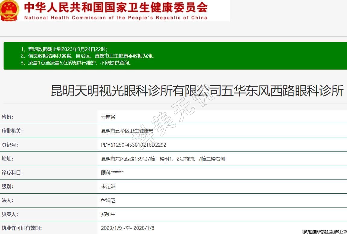 昆明天明視光眼科診所有限公司五華東風(fēng)西路眼科診所