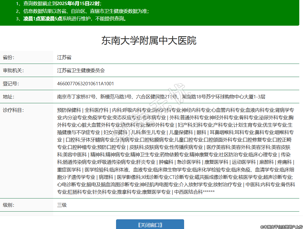 省份:江蘇省審批機(jī)關(guān):江蘇省衛(wèi)生健康委員會(huì)登記號(hào):46600770632010611A1001地址:南京市丁家橋87號(hào)、新模范馬路3號(hào)、六合區(qū)健民路211號(hào)、湖南路18號(hào)蘇寧環(huán)球購(gòu)物中心大廈1-3層診療科目:預(yù)防保健科 | 全科醫(yī)療科 | 內(nèi)科;呼吸內(nèi)科專業(yè);消化內(nèi)科專業(yè);神經(jīng)內(nèi)科專業(yè);心血管內(nèi)科專業(yè);血液內(nèi)科專業(yè);腎病學(xué)專業(yè);內(nèi)分泌專業(yè);免疫學(xué)專業(yè);變態(tài)反應(yīng)專業(yè);老年病專業(yè) | 外科;普通外科專業(yè);神經(jīng)外科專業(yè);骨科專業(yè);泌尿外科專業(yè);胸外科專業(yè);心臟大血管外科專業(yè);燒傷科專業(yè);整形外科專業(yè) | 婦產(chǎn)科;婦科專業(yè);產(chǎn)科專業(yè);計(jì)劃生育專業(yè);優(yōu)生學(xué)專業(yè);生殖健康與不孕癥專業(yè) | 婦女保健科 | 兒科;新生兒專業(yè) | 兒童保健科 | 眼科 | 耳鼻咽喉科;耳科專業(yè);鼻科專業(yè);咽喉科專業(yè) | 口腔科;牙體牙髓病專業(yè);牙周病專業(yè);口腔粘膜病專業(yè);兒童口腔專業(yè);口腔頜面外科專業(yè);口腔修復(fù)專業(yè);口腔正畸專業(yè);口腔種植專業(yè);預(yù)防口腔專業(yè) | 皮膚科;皮膚病專業(yè);性傳播疾病專業(yè) | 醫(yī)療美容科;美容外科;美容牙科;美容皮膚科;美容中醫(yī)科 | 精神科;精神病專業(yè);精神衛(wèi)生專業(yè);藥物依賴專業(yè);精神康復(fù)專業(yè);社區(qū)防治專業(yè);臨床心理專業(yè) | 傳染科;腸道傳染病專業(yè);呼吸道傳染病專業(yè);肝炎專業(yè) | 腫瘤科 | 急診醫(yī)學(xué)科 | 康復(fù)醫(yī)學(xué)科 | 運(yùn)動(dòng)醫(yī)學(xué)科 | 麻醉科 | 疼痛科 | 重癥醫(yī)學(xué)科 | 醫(yī)學(xué)檢驗(yàn)科;臨床體液、血液專業(yè);臨床微生物學(xué)專業(yè);臨床化學(xué)檢驗(yàn)專業(yè);臨床免疫、血清學(xué)專業(yè);臨床細(xì)胞分子遺傳學(xué)專業(yè) | 病理科 | 醫(yī)學(xué)影像科;X線診斷專業(yè);CT診斷專業(yè);磁共振成像診斷專業(yè);核醫(yī)學(xué)專業(yè);超聲診斷專業(yè);心電診斷專業(yè);腦電及腦血流圖診斷專業(yè);神經(jīng)肌肉電圖專業(yè);介入放射學(xué)專業(yè);放射治療專業(yè) | 中醫(yī)科;內(nèi)科專業(yè);骨傷科專業(yè);肛腸科專業(yè);針灸科專業(yè);推拿科專業(yè);康復(fù)醫(yī)學(xué)專業(yè) | 中西醫(yī)結(jié)合科******級(jí)別:三級(jí)法定代表人:黃英姿主要負(fù)責(zé)人:黃英姿執(zhí)業(yè)許可證有效期:2020/01/13 -至- 2035/01/12 -