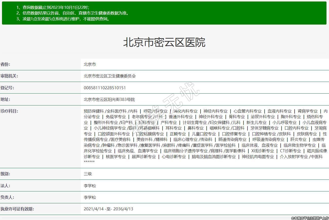 審批機關(guān):北京市密云區(qū)衛(wèi)生健康委員會