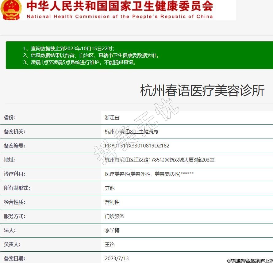 備案機關(guān):杭州市濱江區(qū)衛(wèi)生健康局