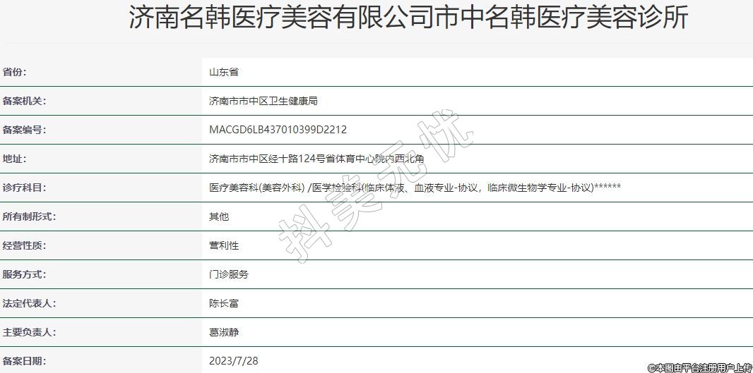 濟(jì)南名韓醫(yī)療美容有限公司市中名韓醫(yī)療美容診所
