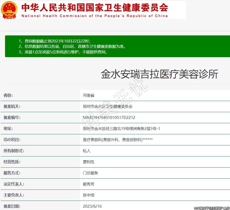 備案機關:鄭州市金水區(qū)衛(wèi)生健康委員會