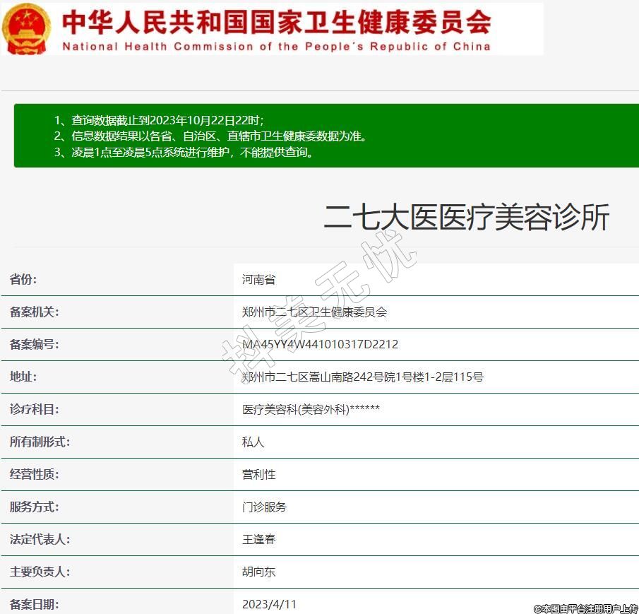 備案機關(guān):鄭州市二七區(qū)衛(wèi)生健康委員會