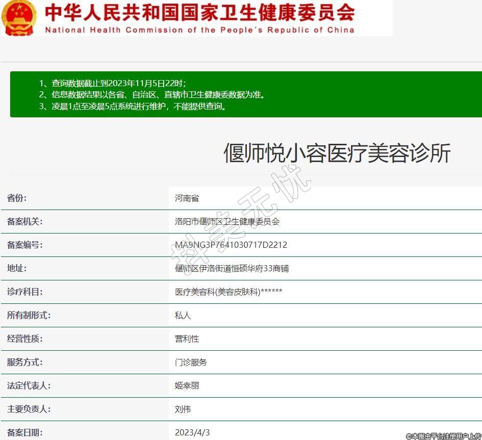 偃師悅小容醫(yī)療美容診所,診療科目:醫(yī)療美容科(美容皮膚科)******