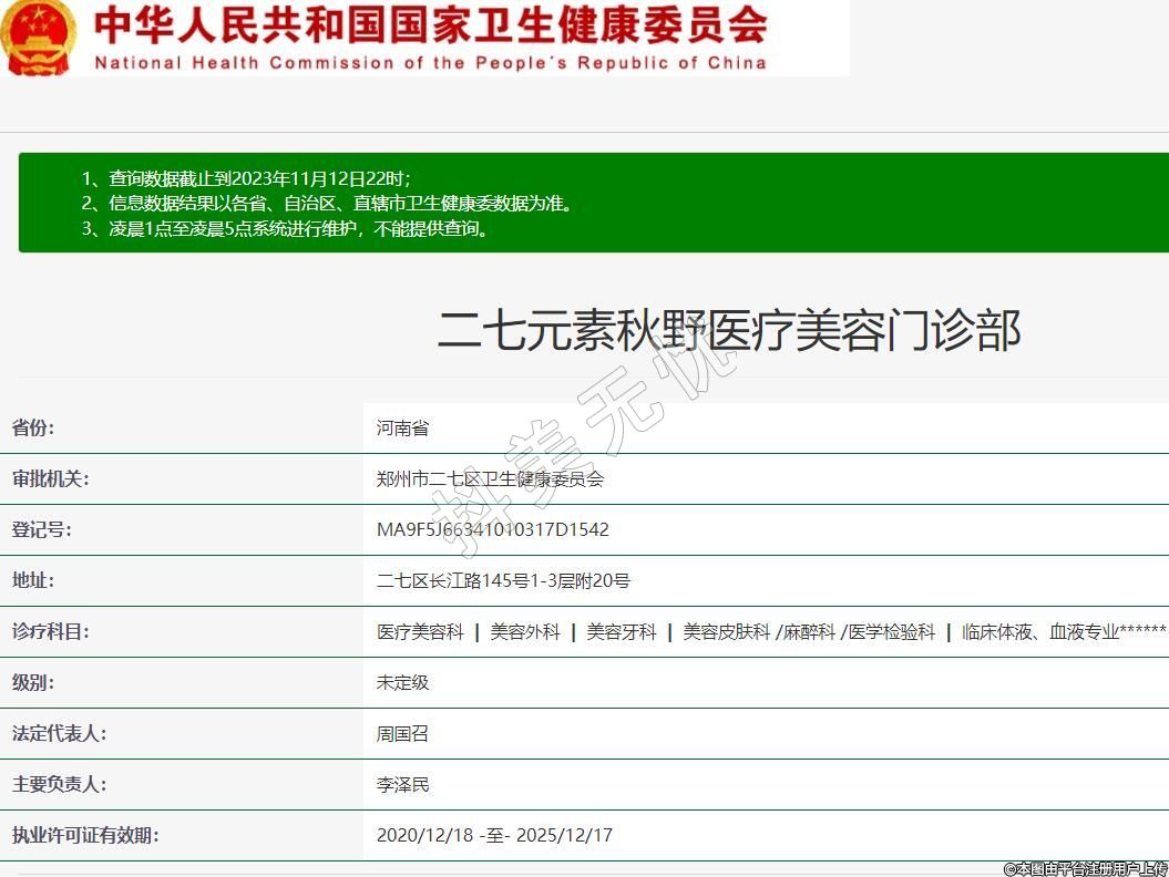 審批機關(guān):鄭州市二七區(qū)衛(wèi)生健康委員會