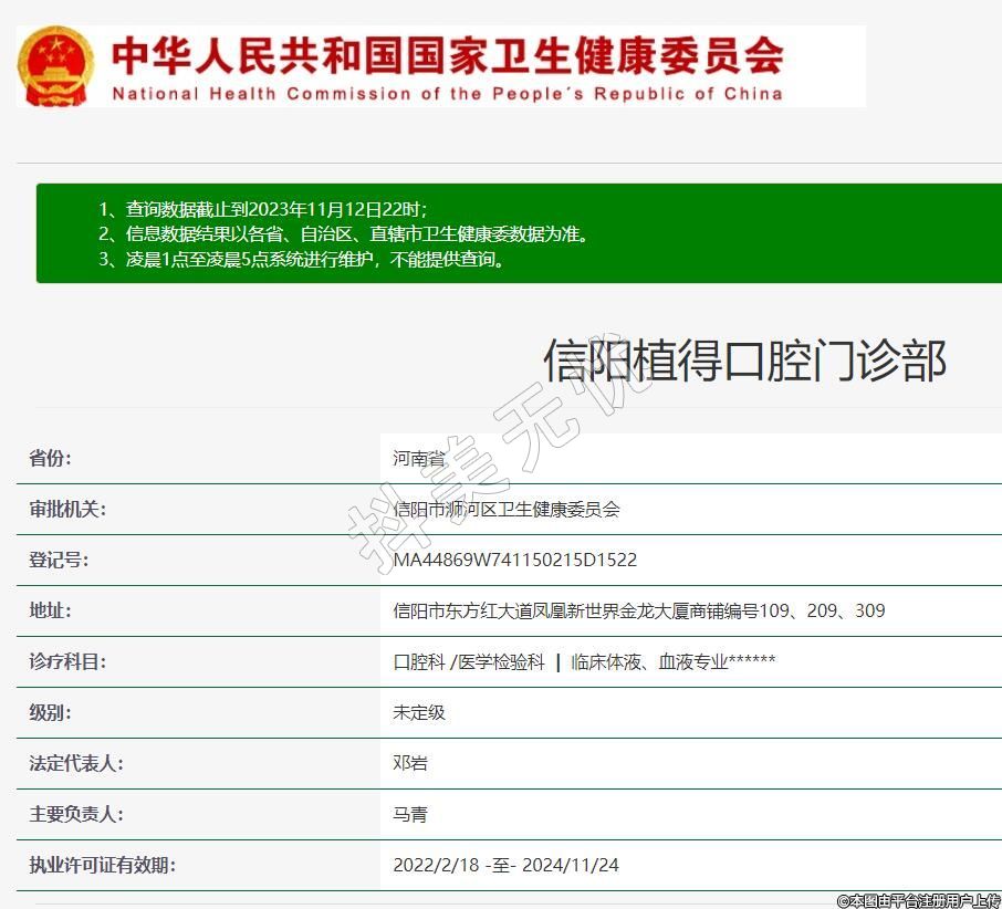 審批機(jī)關(guān):信陽市浉河區(qū)衛(wèi)生健康委員會
