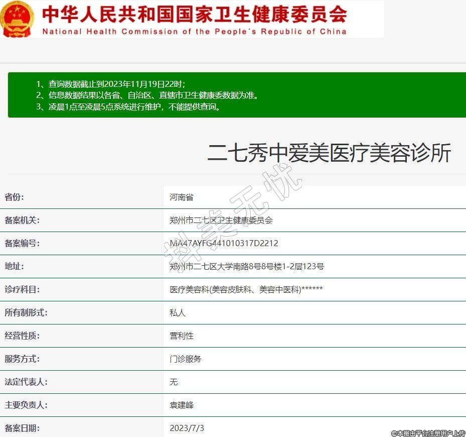 備案機關:鄭州市二七區(qū)衛(wèi)生健康委員會