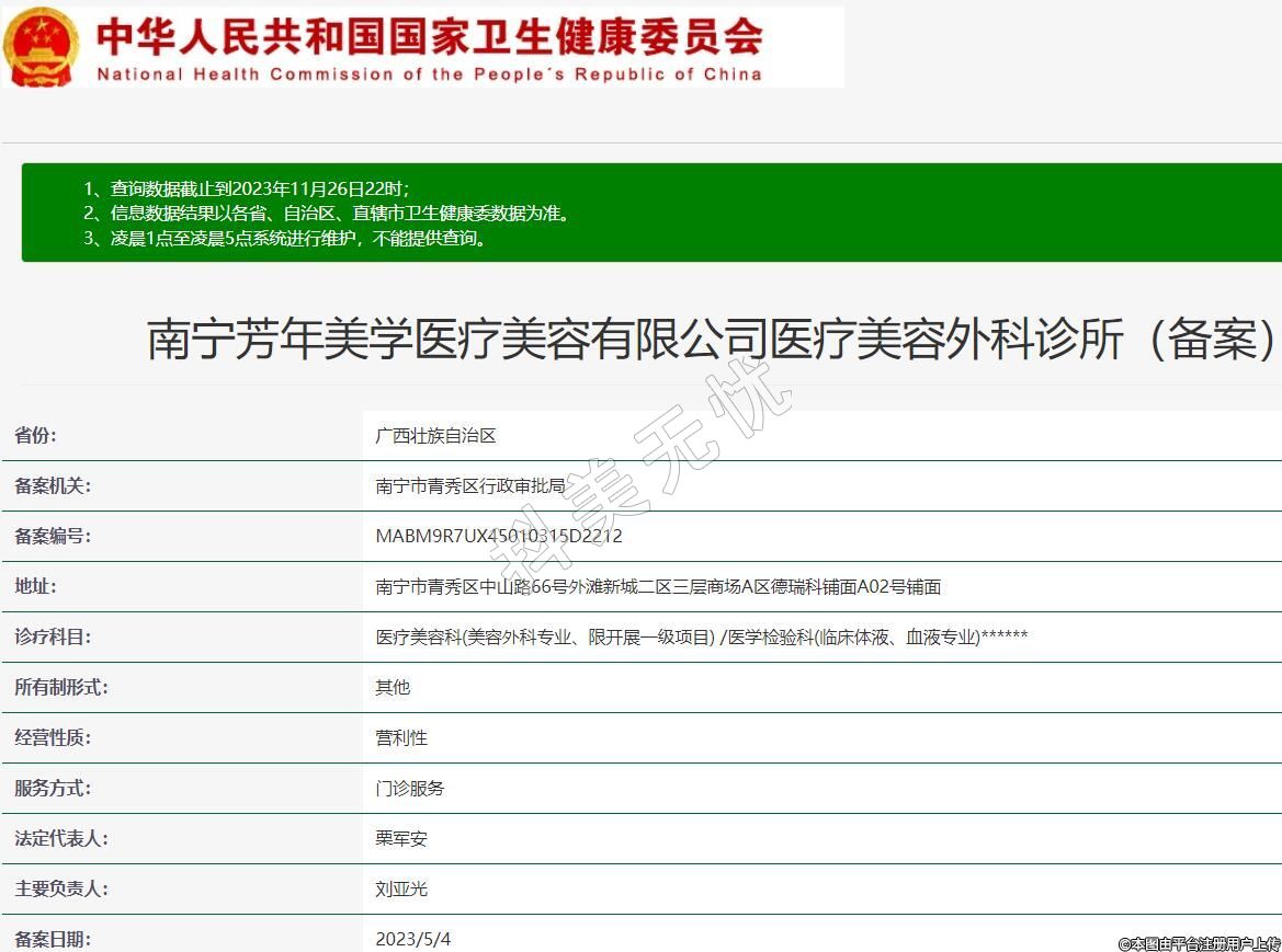 南寧芳年美學醫(yī)療美容有限公司醫(yī)療美容外科診所(備案)