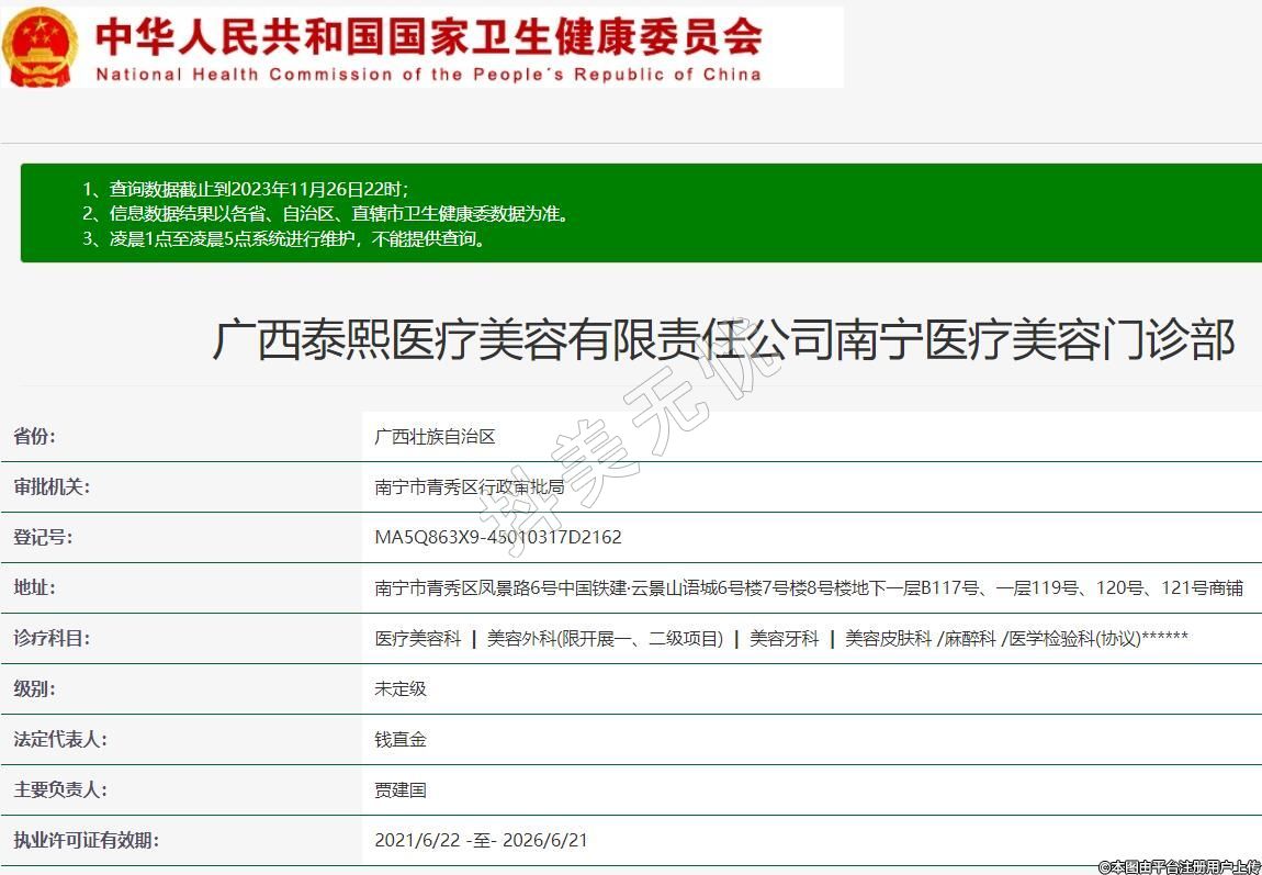 廣西泰熙醫(yī)療美容有限責(zé)任公司南寧醫(yī)療美容門(mén)診部