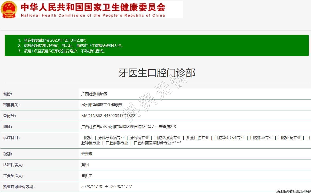 審批機關:柳州市魚峰區(qū)衛(wèi)生健康局